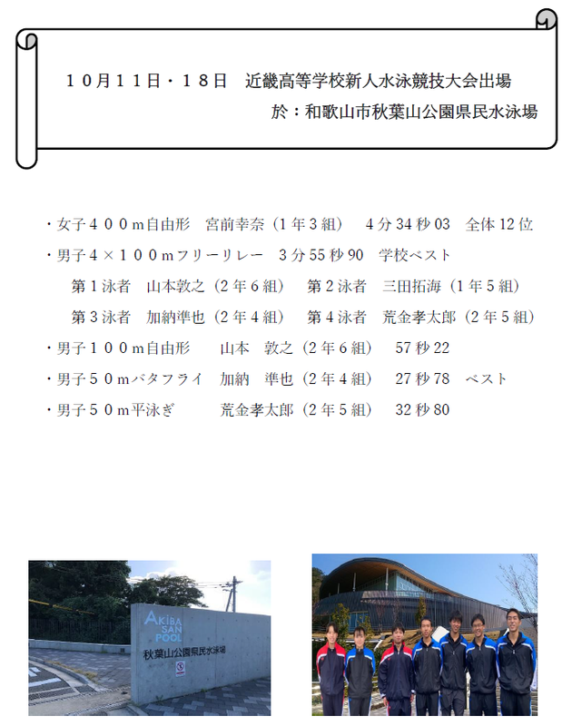 令和2年度近畿高等学校新人水泳競技大会出場について