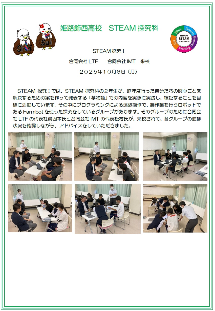 STEAM探究Ⅰ 合同会社LTF 合同会社IMT 来校