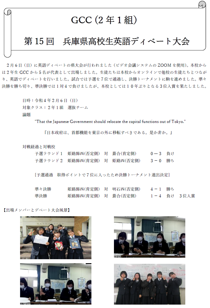 2年GCC 県高校生英語ディベート大会3位入賞!