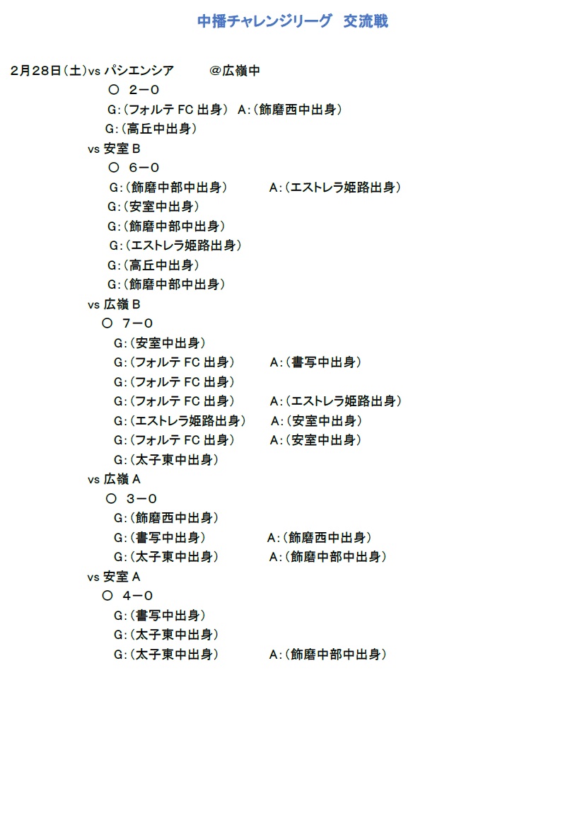サッカー部 中播チャレンジリーグ 交流戦