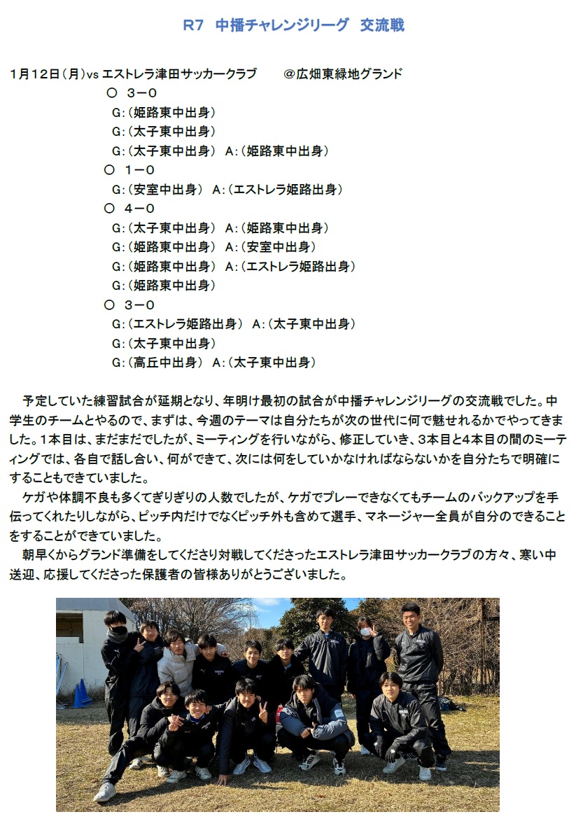 サッカー部 中播チャレンジリーグ 交流戦