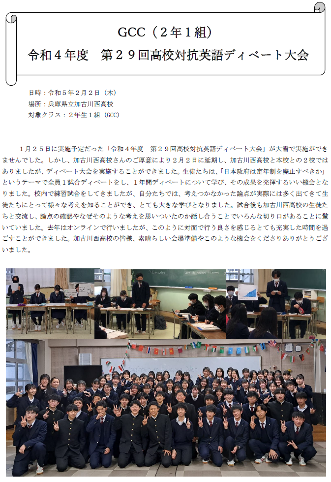 2023年2月の記事一覧 2023年2月 全ての記事 アーカイブ 2025年12月 (0) 2025年11月 (0) 2025年10月 (0) 2025年9月 (0) 2025年8月 (0) 2025年7月 (0) 2025年6月 (0) 2025年5月 (0) 2025年4月 (0) 2025年3月 (0) 2025年2月 (0) 2025年1月 (0) 2024年12月 (0) 2024年11月 (0) 2024年10月 (0) 2024年9月 (0) 2024年8月 (0) 2024年7月 (0) 2024年6月 (0) 2024年5月 (0) 2024年4月 (0) 2024年3月 (0) 2024年2月 (0) 2024年1月 (0) 2023年12月 (0) 2023年11月 (0) 2023年10月 (1) 2023年9月 (1) 2023年8月 (0) 2023年7月 (1) 2023年6月 (0) 2023年5月 (0) 2023年4月 (0) 2023年3月 (2) 2023年2月 (4) 2023年1月 (2) 2022年12月 (1) 2022年11月 (1) 2022年10月 (1) 2022年9月 (1) 2022年8月 (1) 2022年7月 (1) 2022年6月 (0) 2022年5月 (0) 2022年4月 (0) 2022年3月 (0) 2022年2月 (3) 2022年1月 (5) 2021年12月 (0) 2021年11月 (1) 2021年10月 (1) 2021年9月 (2) 2021年8月 (0) 2021年7月 (0) 2021年6月 (0) 2021年5月 (0) 2021年4月 (0) 2021年3月 (1) 2021年2月 (3) 2021年1月 (0) 2020年12月 (1) 2020年11月 (0) 2020年10月 (0) 2020年9月 (2) 2020年8月 (0) 2020年7月 (0) 2020年6月 (4) 2020年5月 (0) 2020年4月 (0) 2020年3月 (0) 2020年2月 (0) 2020年1月 (0) 2019年12月 (0) 2019年11月 (0) 2019年10月 (0) 2019年9月 (0) 2019年8月 (0) 2019年7月 (0) 2019年6月 (0) 2019年5月 (0) 2019年4月 (0) 2019年3月 (0) 2019年2月 (1) 2019年1月 (0) 2018年12月 (0) 2018年11月 (0) 2018年10月 (0) 2018年9月 (0) 2018年8月 (0) 2018年7月 (0) 2018年6月 (0) 2018年5月 (0) 2018年4月 (0) 2018年3月 (1) 2018年2月 (2) 2018年1月 (0) 2017年12月 (0) 2017年11月 (0) 2017年10月 (0) 2017年9月 (1) 2017年8月 (0) 2017年7月 (1) 2017年6月 (0) 2017年5月 (0) 2017年4月 (0) 2017年3月 (1) 2017年2月 (2) 2017年1月 (0) 2016年12月 (0) 2016年11月 (0) 2016年10月 (0) 2016年9月 (0) 2016年8月 (1) 2016年7月 (1) 2016年6月 (0) 2016年5月 (0) 2016年4月 (0) 2016年3月 (1) 2016年2月 (2) 2016年1月 (0) 2015年12月 (0) 2015年11月 (2) 2015年10月 (0) 2015年9月 (0) 2015年8月 (0) 2015年7月 (0) 2015年6月 (0) 2015年5月 (0) 2015年4月 (0) 2015年3月 (1) 2015年2月 (1) 2015年1月 (0) 2014年12月 (0) 2014年11月 (0) 2014年10月 (0) 2014年9月 (0) 2014年8月 (0) 2014年7月 (0) 2014年6月 (0) 2014年5月 (0) 2014年4月 (0) 2014年3月 (1) 2014年2月 (1) 2014年1月 (2) 2013年12月 (1) 2013年11月 (1) 5件 1件 5件 10件 20件 50件 100件 GCC:2年1組 高校生SDGs探究発表会 投稿日時 : 2023/02/09 システム管理者 GCC:2年1組 第29回高校対抗英語ディベート大会 投稿日時 : 2023/02/09 システム管理者 GCC:2年1組 2年連続 ベスト4! 投稿日時 : 2023/02/09 システム管理者 Global Meeting (グローバルミーティング) 投稿日時 : 2023/02/02 国際理解教育