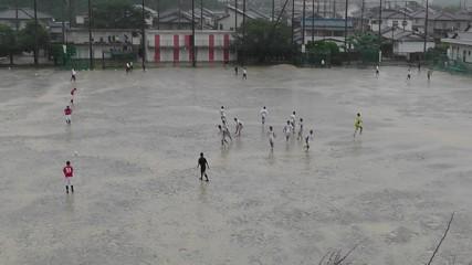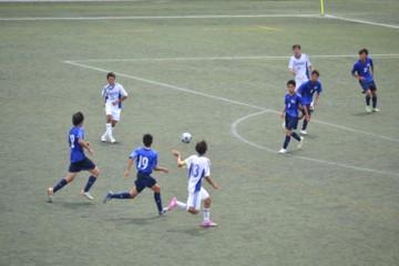 第15節(最終節)は赤穂高校と対戦。昨年度も最終節で対戦し大敗した相手である。夏休みに入り、姫路フェスティバルや西日本フェスティバルで経験を積み、その成果が試される試合となった。台風が接近し、いつ警報が発令されてもおかしくない暴風雨の中、試合は始まった。一進一退の攻防が続く中、相手左サイドのクロスから先制点を奪われる。前半は0-1で終了。後半に入って雨がやんだが、グランドは水浸しの状況で、早めに前線にパスを送るシンプルなサッカーを続ける。そして後半10分、左サイドから駆け上がった左DFがペナルティエリア内で相手DFに倒され、PKを得る。FWが冷静にゴールにたたき込み、同点! しかし、後半20分にコーナーキックから失点し、その後FWが何度となく抜け出し、シュートを放つが決まらず、1-2で試合終了。雨の中の激戦を制することはできなかった。