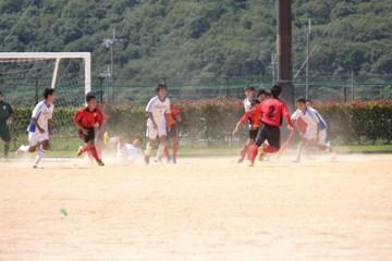 敗者戦は香寺高校と対戦。負ければ県大会への望みが絶たれる重要な一戦となった。前半5分に左サイドを抜け出したFWが幸先よく先制のゴール! 主導権を握って試合を進めたが、前半15分にコーナーキックから失点。しかし、前半終了間際にDFからのロングパスにまた抜け出したFWが、直前のPK失敗の汚名を晴らすゴールを決めて2-1で前半終了。後半は両チームともに運動量が減り、持久戦の様相に。試合終了間際に、交代出場の右MFのシュートがクロスバーに弾かれ、同じく途中出場のFWがゴールへ押し込み、勝利を決定づける3点目。3-1で持久戦をものにし、県大会出場まであと1勝に迫った。次戦は9月21日(日)12:00よりサンブロススポーツフィールドしんぐうで飾磨高校と対戦。この1週間でまず疲れをとり、万全の準備をして第5代表決定戦に臨みたい。