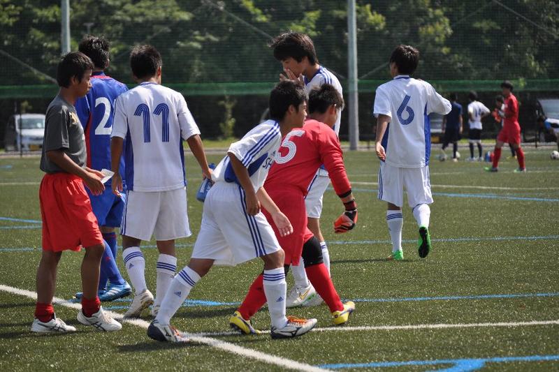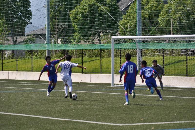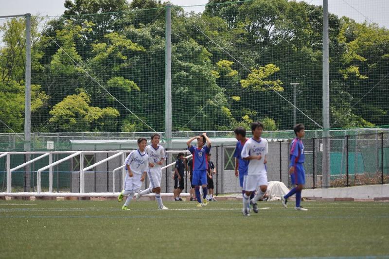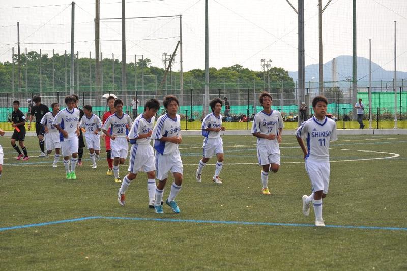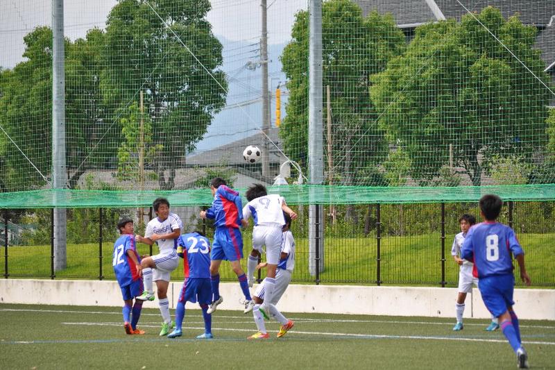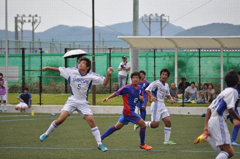 第14節は相生産業高校と対戦。前半に3得点し、3-0で前半終了。しかし、崩した形は少なく、相手のミスからの速攻やFWの突破力に頼る得点であった。また守備から思うように攻撃に繋げられなかった。後半に入って相手の足が止まり始め、逆に本校の選手は活発に動き、ゴール前に枚数を掛けられるようになった。厚みのある攻撃で相手を翻弄し、得点を積み重ね、9-1で大勝することができた。2月から始まったリーグ戦は9勝3敗2分けで2部リーグ3位となり、来年2月から始まるリーグ戦も2部リーグで戦うことが決まりました。夏休みは他地域との試合を多く組んでいます。更に実力を着け、9月の選手権予選で良い結果を掴むよう努力していきます。
