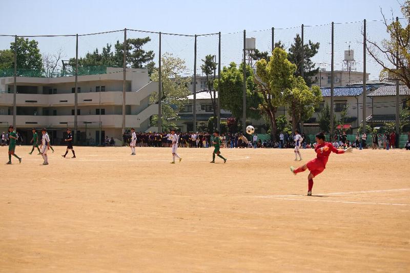 本校初戦となる2回戦は県伊丹と対戦。どの大会でも常に上位に顔を出す強豪との対戦となった。試合開始から、相手のボール支配率が高く、なかなかボールが奪えない。奪った後も素早い寄せで奪い返される。苦しい展開が続き、前半に3失点を喫する。後半も相手の攻撃が続き失点を重ねるが、失点直後には皆で声を掛け合い、最後まで闘いきった。シュートがゴールポストをたたく惜しい場面もあったが、0-6で完敗した。