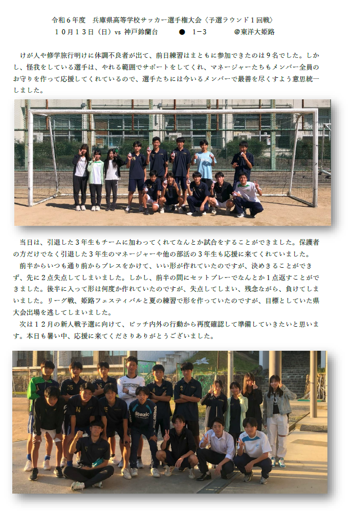 サッカー部:県高等学校サッカー選手権大会〈予選ラウンド1回戦〉