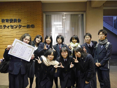 個人の部門において7名、作品の部門において2作品 が入賞できました。 14日と15日に行われる県大会でも健闘できるよう 皆さんの応援をよろしくお願いします。 ○アナウンス部門 入選 村田光 (3年)(県大会出場決定) 入選 佐藤早苗 (2年)(県大会出場決定) 佳作 川上由香梨(2年) 佳作 上村友子 (2年) ○朗読部門 入選 寺村彩加 (1年)(県大会出場決定) 入選 羽田望里 (3年)(県大会出場決定) 佳作 磯島渉 (2年) ○創作ラジオドラマ部門 佳作 「Time is money」 制作代表 羽田望里 佳作 「口先女」 制作代表 前川のぞみ(2年) |