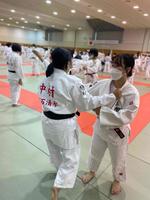 本校から村上苺奈(3年生)と中村悠乃(2年生)が出場しました。2人は、昨年度の県新人柔道大会の結果によって選抜されました。