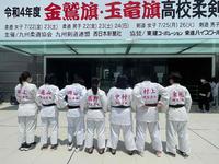 令和4年7月22日(金)~24日(日)で福岡県で『金鷲旗高校柔道大会』が開催されました。北は北海道、南は沖縄県と全国各地から出場があり、本大会はオープン参加の全国大会と位置付けられています。そんな中、本校の女子柔道部が久しぶりに出場しました。新型コロナ感染拡大第7波の中ではありましたが、何とか部員全員で体調管理をおこない当日は試合が出来ました。1回戦で長崎県の瓊浦(けいほ)高校が対戦相手でした。結果は敗退。しかし、3年生の力と1・2年生の粘り強さが出た試合であったように思います。負けはしたものの、部員にとっていい経験と今後の糧になったように思います。