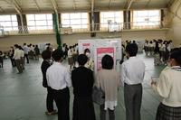 3月4日(土)明石清水高校、明石北高校、明石西高校の三校が明石北高校に集まって、三校合同発表会が行われました。本校からは人と環境類型2年生の4名の生徒がそれぞれの作成したポスターを使って発表しました。