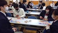 2月9日(木)2年生の「総合的な探究の時間に、インドネシアのアルマアヒラ中等教育学校の中学生とオンラインで第2回交流を行いました。2年生30名が10グループにわかれ、今回は自分たちが紹介したい日本の文化について、具体的な物を示しながら説明する“Show and Tell”を行いました。本校生は「おみくじ」「漫画『ワンピース』」「漫画『ナルト』」「お金」「ほうき・ちりとり」などを、現物を見せながら英語で説明し、インドネシアの生徒たちは、「観光地」や「食べ物」などについてスライドで説明しました。