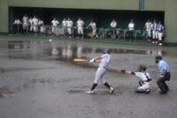翌14日(金)午後3時半より試合が再開され、昨日から勝利のために、顧問と選手で策を練って挑みましたが、残念ながら敗戦となりました。ゲームセットの瞬間、肩を落とし、悔し涙する選手も多くいましたが、互いに頑張ってきたことをたたえ合う光景もあり、特に3年生は立派に見えました。ベンチだけでなくスタンドも、そして学校にいた教職員や生徒たちも一丸となって応援し、雨の中一球を追いかける素晴らしい試合になったと思います。