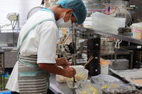 講義や体験談、施設見学の後はレストランでさまざまな国の料理をいただきました。レストランの中は留学生の方も大勢いるなど国際色豊かで、月替わりメニューのパキスタン料理の定食を注文した生徒は、スパイシーな料理に驚きながらも美味しくいただきました。