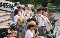4月13日(土)明石トーカロ球場で行われた春季兵庫県高等学校野球大会の応援に行きました。お天気にも恵まれ、満開の桜をバックに演奏で応援しました。野球部員の声援と共に「チーム清水」一丸となって応援できたのではないかと思います。