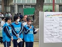 3月16日(土)イオン明石ショッピングセンター2番街1階SEA PARKにて、「明石清水、明石北、明石西3校合同発表会」が開催され、本校の人と環境類型2年生より代表生徒3名がそれぞれ「教育」「介護」「観光」の分野で研究の成果を発表しました。また、人と環境類型の授業で学んだことを生かし、ひとかん有志の生徒5名が「防災ハザードマップから知る南海トラフ地震」というテーマで、ワークショップを実施し、多くの市民の方々に参加していただきました。