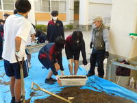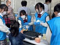 1月13日に魚住小学校で左義長が行われ、我が校のボランティア部もお手伝いし、豚汁、ぜんざいなどを振る舞い、大成功のうちに終わりました。
