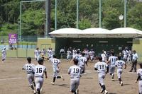 試合中盤までは投手戦となり互いに譲らず0対0のまま拮抗した試合が続いていました。その後6回裏東播磨高校が3点を入れ0対3となりましたが、8回表二塁打や四球により1アウト満塁のチャンスを作ると2番森岡汰のタイムリーヒット、3番今岡の犠牲フライ、そして、4番で主将原の2点タイムリーヒットで、一気に4点を入れ逆転、その後全員で1点を守り切り、大逆転勝利となりました。