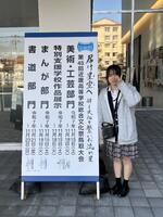 昨年度の兵庫県高等学校総合文化祭美術工芸部門展のデザイン・イラストで近畿大会の推薦を受けた2年柳田詠美さんが、令和7年11月15日(土)~18日(火)第45回近畿高等学校総合文化祭鳥取大会の美術工芸部門展に参加してきました。今年の3月に開館したばかりの鳥取県立美術館に作品が展示され、エースパック未来中心で開会式や講演会、生徒交流会が実施されました。見ごたえのある作品ばかりで、圧倒されました。生徒交流会では倉吉市の名産である絣を用いた「ごはん茶碗」型のブローチを作りました。他県の生徒から刺激を受け、今後の制作に生かしてほしいです。