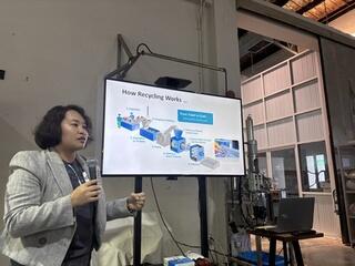 ここでは、「Why is Recycled Plastic Sustainable?」というテーマでワークショップが行われました。プラスチック問題に関する簡単な講義の後、リサイクルブラスチックでキーホルダーやストラップを作りました。もちろん全て英語でしたが、とても分かりやすく、リサイクルの重要性について楽しく学ぶことが出来ました。