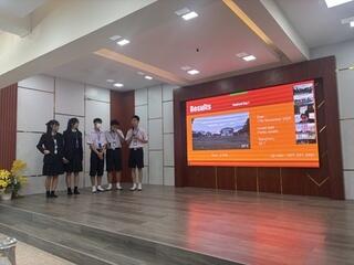 全員が英語での発表は初めてで、大変緊張していましたが、30分間で多くのチェンライ校の生徒や先生方に説明し、質問やコメントをもらうことができ、大きな達成感を得ることができました。