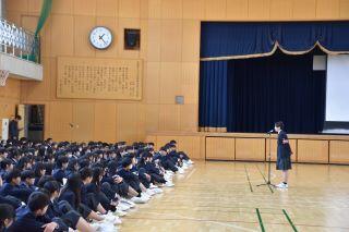 今回は、SS探究Ⅱで「外国人観光客に日本のマナーをどのように伝えるか」というテーマに取り組んでいる2年次生2名が出演しました。探究を始めたきっかけや有馬温泉で外国人観光客にインタビューを実施したことなどについて,いきいきと語ってくれました。また今後取り組んでいきたい活動についても紹介してくれました。
