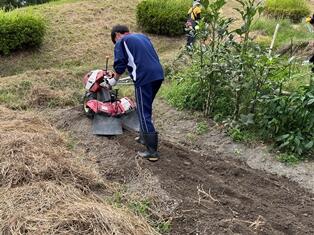 野菜を植えていない場所では、伸びた雑草を刈ったり、土を耕したりして、次に植える野菜の準備を進めました。