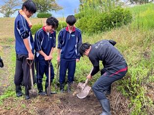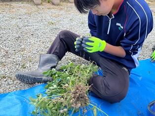 今日は、落花生の収穫を行いました。株を抜くと、土の中からたくさんの実が出てきて、生徒たちは大喜びでした。