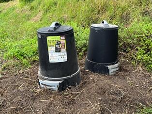 最後にコンポストを設置し、刈り取った雑草や野菜くず、落ち葉を入れてたい肥づくりを始めました。これからの畑づくりがますます楽しみです。