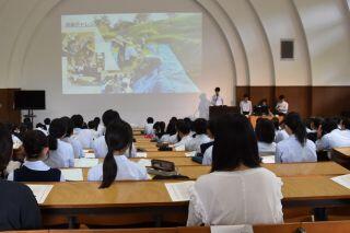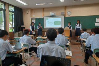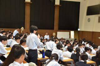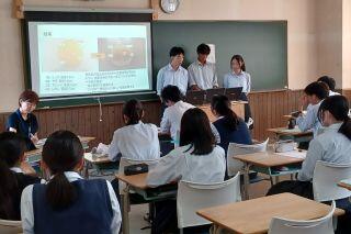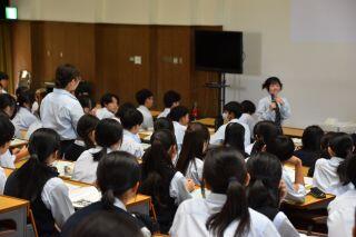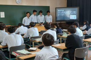 先輩の活動報告や探究活動で大切なこと等を教えてくれました。さすが3年生!でも、先輩たちも1年次の時は「みんなの前で発表なんて…。」と言っていましたね。「伝えたい思いが大切!」です。