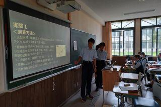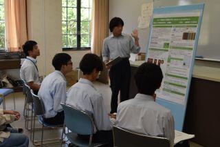 講演の後は、いよいよポスター発表です。英語で作成したポスターを使い、説明から質疑応答まですべて英語で行いました。祥雲館代表の3名は、今年3月に台湾での科学研修に参加し、英語での課題研究発表に挑戦してきた生徒たちです。その経験が存分に生かされ、3人とも堂々とした態度で発表し、質疑応答にも余裕を持って対応していました。