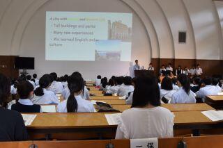 7月22日から始まるオーストラリア研修に向けての事前研修3回目が行われました。6月20日(金)、有馬高校のALTで、パース出身のメリッサ先生をお招きして、オーストラリア文化、パースの交通手段、ホームステイでのマナーなど研修に必要な基礎知識をレクチャーしていただきました。研修参加者に加えて、ESSの生徒も参加し、メモを取りながら聞き入っていました。これから渡航準備を進めていく生徒にとって、非常に有益な講義となりました。