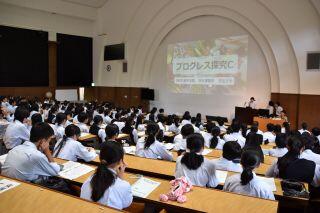 第2部 1年次生は大講義棟にて、「1年次生の体験発表(SS探究1、ミュージアムツアー、サイエンスツアー、オーストラリア研修、プログレス探究A)」「3年次生発表(プログレス探究B、プログレス探究C)」を行いました。