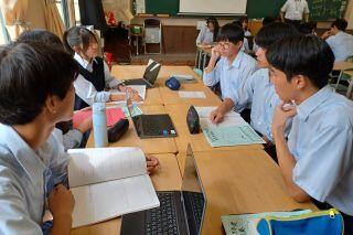 英語が苦手英語が苦手な生徒も、一生懸命にコミュニケーションをとり、楽しそうに会話を続けている姿がとても頼もしく感じられました。今後は、それぞれのグループで決めたテーマに沿って研究を進めながら、月に1回のペースでミーティングを行っていく予定です。遠く離れた外国の高校生と、共通のテーマで協力しながら探究を深められるのは、本当に貴重で素晴らしい機会だと思います。力を合わせて、がんばっていきましょう。