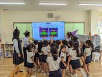ESS部は、10月6日(月)、近隣の幼稚園に英語出前授業に行きました。対象は5歳児さんで、「ハロウィーンを楽しもう!」というテーマでクイズ、ゲーム、英語の歌を取り入れた授業を行いました。