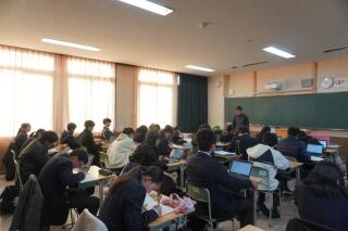 今日で、今年の授業も終了です。お疲れさまでした。明日は大掃除と全校集会、年次集会・LHRで終わりとなります。この時期、7限になると窓から夕日が差し込み、少し感傷的な気持ちになるのは、僕だけでしょうか。特に4~6組側は遮るものがないため、教室いっぱいに光が広がります。3階にいる1年次ならではの風景ですね。