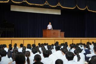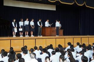 今日は夏休み前、最後の登校日でした。祥雲館は前期・後期制を採用しているため、終業式ではありませんが、一つの区切りとして全校集会が行われました。