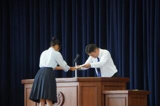 始業式後には表彰伝達も行われました。24回生からも、読書感想文や陸上競技部で活躍した生徒が表彰されました。おめでとうございます!