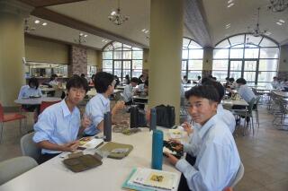 お昼ご飯も、教室の中だけでなく、外や食堂で食べる人の姿も見られますね。