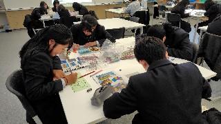 次のクラスではバディー生徒と一緒にアボリジニのデザインをウチワに描きながらおしゃべりをしました。