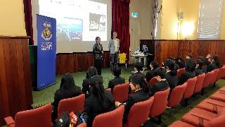 今日は学校交流の1日です。パース市北部の郊外にあるButler Collegeを訪問し、バディを組んだ生徒や日本語クラスを選択している生徒たちと交流しました。はじめにレクチャーホールに入ってオリエンテーションや自己紹介を行いました。