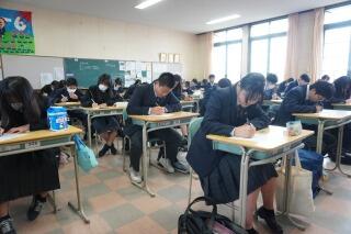 国語80分、英語80分、数学100分と、普段の考査よりも長時間の試験となりました。始まる前は「そんなに長く集中できるかな」と心配していた人もいましたが、どの教科でも最後の最後までペンを動かしている姿が見られました。長い時間、集中して考え続けられるようになったのは、皆さんの大きな成長です。