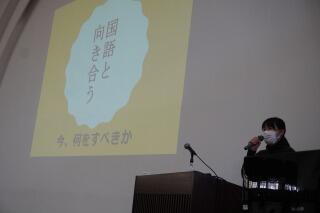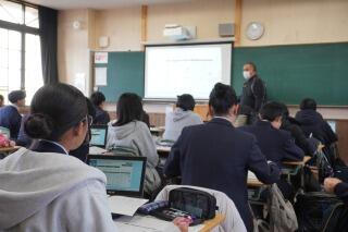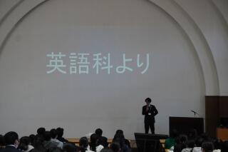 考査終了後は、大講義棟で合同LHRを行いました。まず増本先生から、この秋に取り組んだ「+15minutes」についてお話がありました。皆さんの取り組む姿勢はどうだったでしょうか。音楽の歌詞にもありましたが、「続けることの大切さ」を改めて伝えてくださいました。