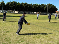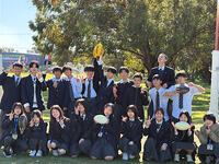 楕円形のボールに最初は戸惑っていた生徒たちも、少しずつコツをつかんで、元気に体を動かしました。