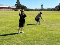 オーストラリア独自のスポーツで、日本ではあまり馴染みがありませんが、こちらでは大人気の競技です。ルールや基本動作を教わり、実際にボールを使ってハンドパスやキックパスに挑戦しました。