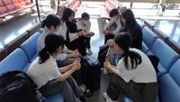 周辺のキャンパスツアーをしましたが、途中から雨模様に…なんとか集合写真を撮ることができました。
