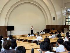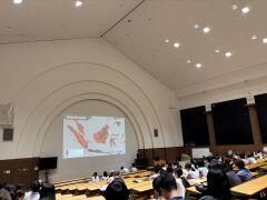 2時。いよいよシンポジウムスタートです。三田祥雲館校長のあいさつの後、第一部は、株式会社バイオーム代表取締役・藤木さんの講演です。研究から起業に至るまで、生物多様性を守るために取り組んでこられたことをわかりやすくお話しいただきました。
