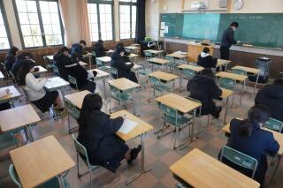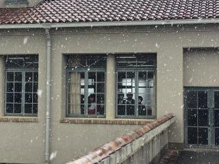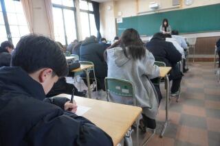 学校では、人数が少ない中ではありますが、授業や朝の小テストなど、通常通りの教育活動が行われています。登校している生徒たちは、小テストにも一生懸命取り組んでいましたよ。