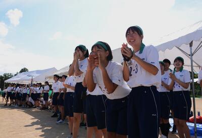 リレー予選で2年次生は、決勝に多くのチームが勝ち進みました。応援席からはクラスの好走に拍手と大声援が踊り、熱気がグラウンドを揺るがすほどでした。