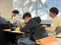 原稿を確認しながら、本番に向けて取り組んでいます。より良い発表ができるよう、帰宅してからも練習してくださいね。